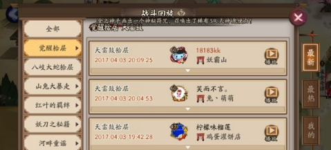 3、刚刚保存的将出现在“最新榜单”中,可对这些战斗进行点赞。赞数高者将进入“日榜”和“周榜”。