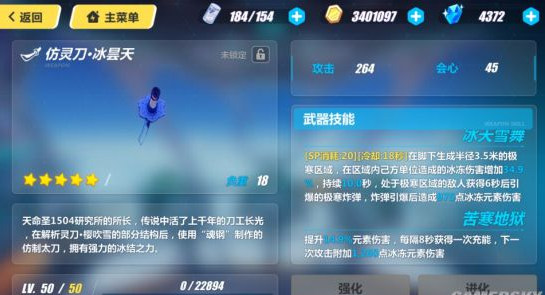 冰昙天可以说是第一件真正意义上的冰元素武器。也就意味着这是S级八重樱角色的毕业武器了。基础提升伤害,并且每隔8秒都有一次极强的冰元素伤害。冰元素伤害本身也会受到被动的加成。不过需要主动技能来为获得更强力的爆发输出,可以说地位等同于鬼铠的磁暴斩。