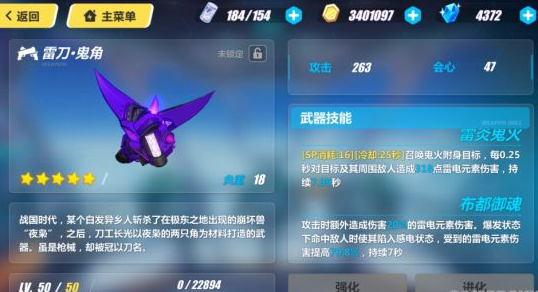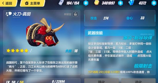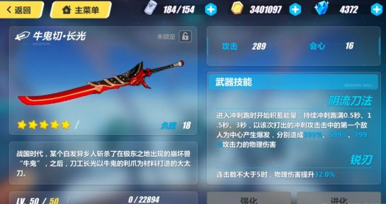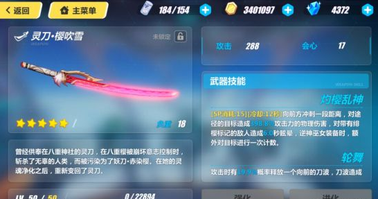 没啥说的,逆神巫女的专属武器。虽然会心偏低了一些,不过可以进行额外计数和攻击概率释放刀波都是非常强力的能力,武器主动技能造成的百分比伤害,会随着八重樱的等级而慢慢增加,而且主动技能对绯樱标记的敌人能造成非常高额的伤害。