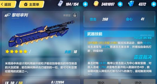 雷霆裁决:暴击时有24.9概率以受击为中心爆发雷圈,对敌人造成1792点雷电伤害并陷入脆弱状态4秒,脆弱期间敌人降低抗打断与50%防御力,最短触发间隔7秒。