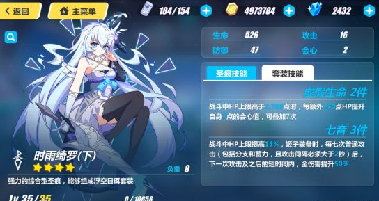 二件套技能不允许闪避,自然就是为姬子这种疯狂刚正面的角色而准备的,三件套的效果提升非常大。但是仅仅冷却时间太长了,很难用的出来。