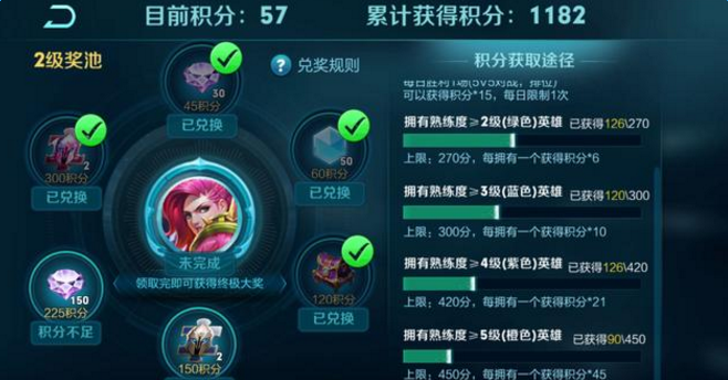 让人觉得苛刻的条件分别为,英雄熟练度,45个二级熟练度英雄,30个三级熟练度英雄,20个四级熟练度英雄,10个5级熟练度英雄。这在很多玩家眼里都是不可能完成的任务。尤其是那些钟情一两位英雄三十年的玩家。很多就直接放弃了这个三级奖励。