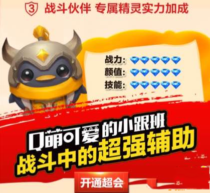 Q萌可爱的小跟班,战斗中的超强辅助。想要拥有的玩家们,就快快去充值超级qq会员吧。战斗伙伴,你的专属精灵实力加成,值得拥有。在开通充值页面直接领取哦。