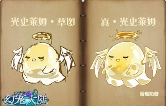 【光史莱姆】它是我在幻宠大陆遇见的第一只幻宠,头戴光环,圆圆的脸上总是带着幸福的笑意,仿佛能够治愈一切的忧愁。这个软软的小天使,看上去弹性十足,身上总是有甜甜的香蕉奶昔的味道。人们总喜欢把它抱在怀中,而软萌好脾气的光史莱姆也不会介意。