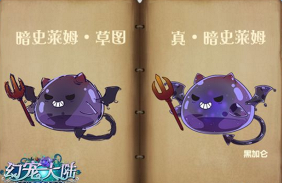 【暗史莱姆】一只挥舞着翅膀、喜欢坏笑的小恶魔,剔透的黑紫色幻宠。整天都带着它的小叉子在镇上到处晃悠。每次看见它我都忍不住想要捏捏它,手还没碰到,就被暗史莱姆打了一下,别看叉子小,打在手上还是挺疼的。听说它爱吃糖,或许我下次应该带些糖果在身上。
