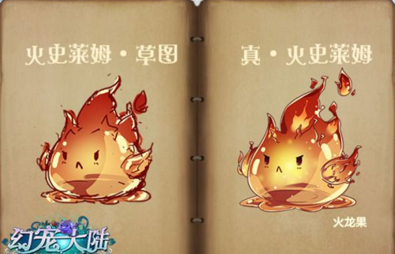 【火史莱姆】这是一只脾气火爆的史莱姆,从外表上来看就是果冻状的小火苗,触感温热,大约火史莱姆自己可以控制它的温度。在它身后需要小心一些,有时走在路上会洒落一地小火星。火史莱姆生起气来喜欢挥舞它的小拳头,这小拳拳要是捶在你胸口上,那滋味可不太好受呀。