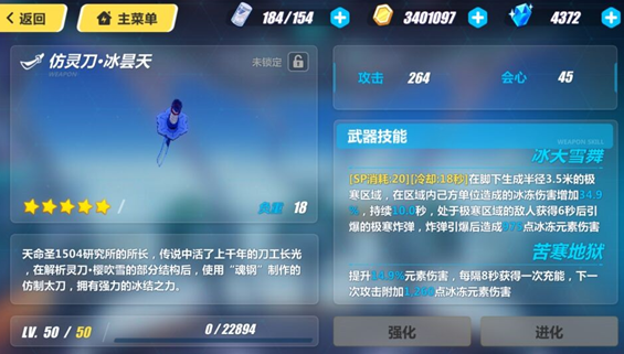 冰昙天可以说是第一件真正意义上的冰元素武器。也就意味着这是S级八重樱角色的毕业武器了。基础提升伤害,并且每隔8秒都有一次极强的冰元素伤害。冰元素伤害本身也会受到被动的加成。不过需要主动技能来为获得更强力的爆发输出,可以说地位等同于鬼铠的磁暴斩。