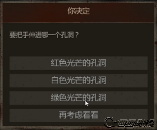盗墓长生印得到泰山石后需要我们把手伸进一个孔洞,有红色、白色和绿色的孔洞,那么选哪一个正确,下面一起和西西来看看盗墓长生印泰山石孔洞选择攻略,希望大家喜欢。