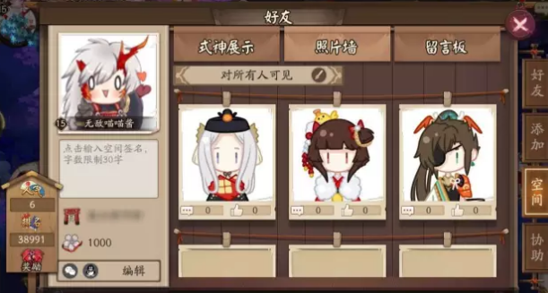 个人空间大翻新除了式神墙和留言板以外新增了照片墙功能