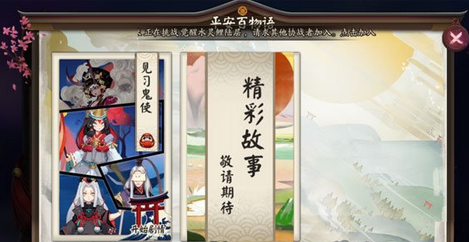 新增图鉴——平安百物语功能,后续的番外剧情将全部在此处展示,需要集齐所需式神后方可开启对应剧情,首次通关后可领取一份奖励。