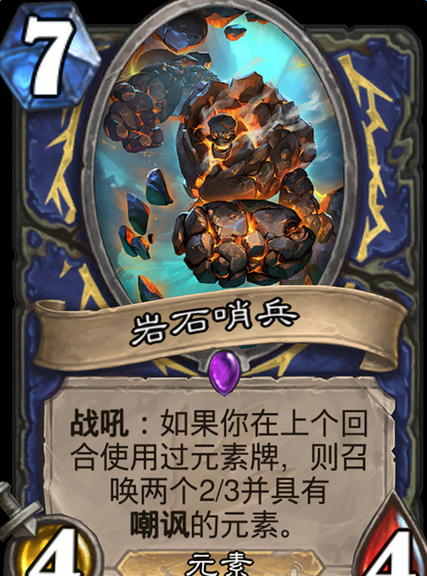 有些元素牌特别适合控制套牌。比如“岩石哨兵”这张可以给你两个嘲讽随从的后期卡牌。还有最新的传说元素随从“欧泽鲁克”,当套牌中还有许多其他小型元素的时候,他将变成超大型嘲讽随从。