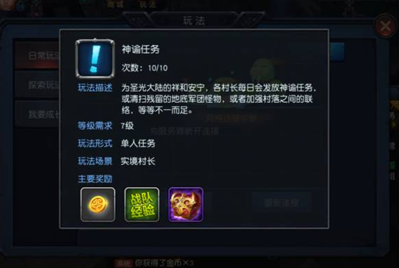 1.每天我们的村长爷爷会给一个神谕任务,做完得到两个神谕: