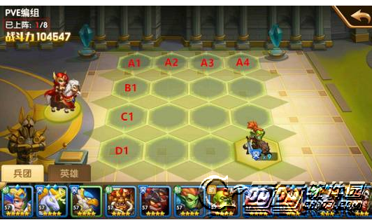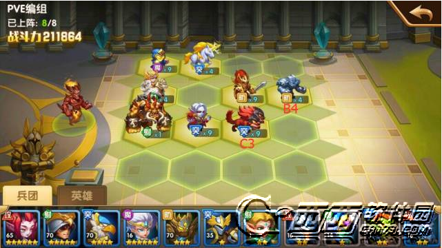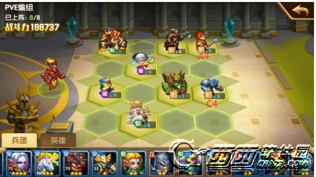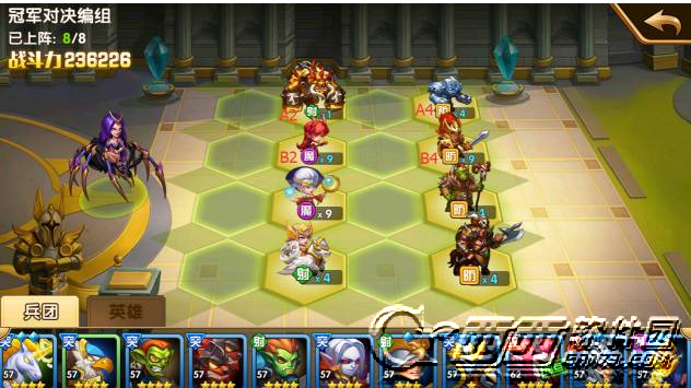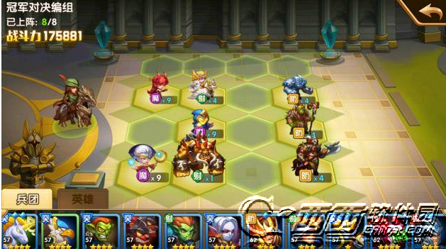 不过玩家同样要对所有的兵团进行大致的了解,因为兵团与兵团之间有可能会因为关联而让双方属性进行提升。在英雄与兵团的搭配中,最好不使用全同类兵团一起上阵,如八个兵种全是射手兵团,虽然在输出上,8射手兵团能够输出报表,不过由于太过于脆弱,敌人轻易就能突破己方防线获得胜利,因此进行合理的混搭兵种是必不可少的。