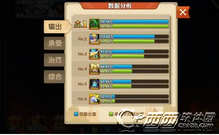 除此之外,玩家可以通过数据分析来对整场比赛所选兵团的输出、承受、治疗、综合进行一个较为系统的数据分析,通过总输出、单局平均输出来对兵团进行总体到单兵的具体分析。