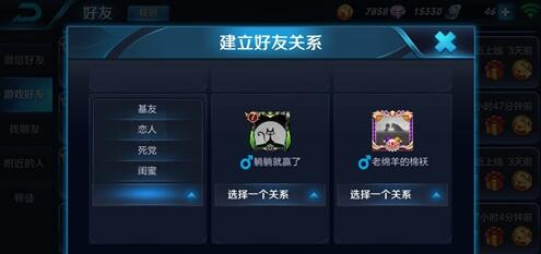 特别提醒,恋人关系以及其他的关系只能设定一个好友,如果你已经设定,则其他人不能再和你拥有这种关系,就是让你不要脚踏两条船的意思
