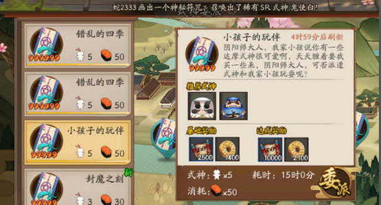 阴阳师式神委托小孩的玩伴推荐式神是什么