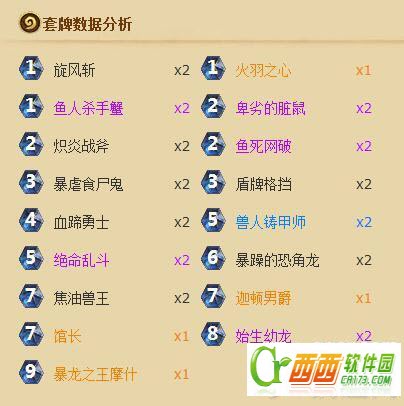 套牌舍弃了常规战士的盾猛和斩杀,换成了大量AOE和Combo组合,同时对阵其它职业也有罗斯神技作后期。