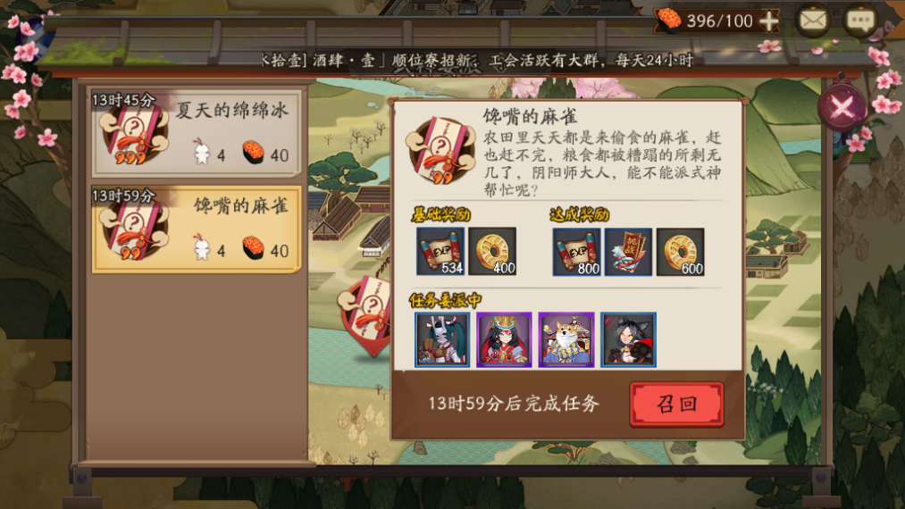 阴阳师式神委派馋嘴的麻雀推荐式神:犬神,九命猫,丑时之女