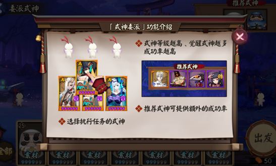 这是一个偏福利的更新,重点在于完美达成之后的奖励,建议放置高等级的推荐式神,提高任务成功率。