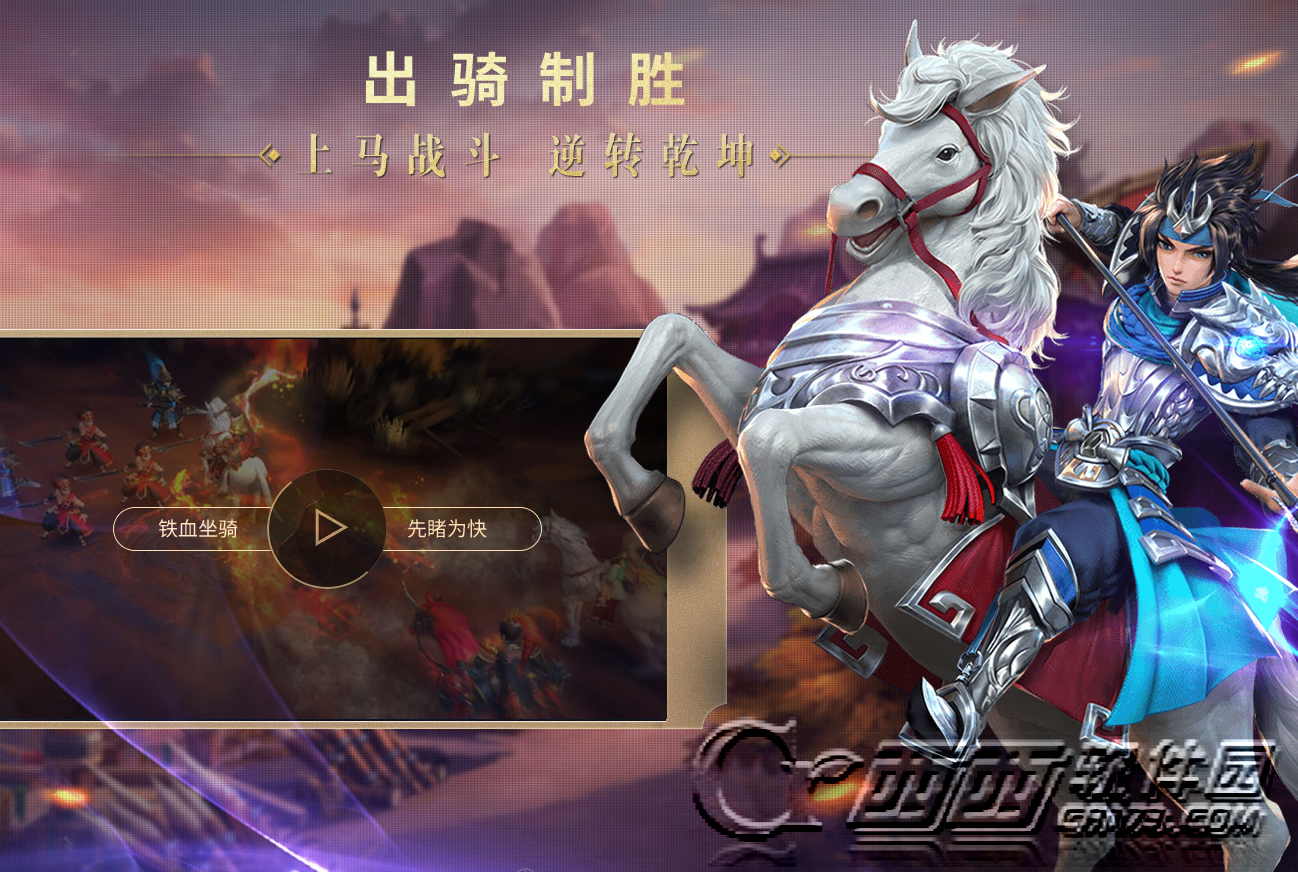 2、创新的采用战棋回合制玩法,同时加入了坐骑战马等多种角色养成玩法。