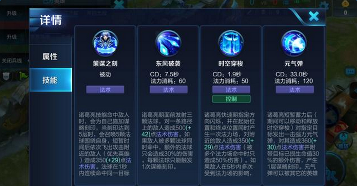 说到诸葛亮,首先就要说他的技能,小编简单形容一下吧,一技能向指定方向发射3枚法球每枚法球集中敌人都会触发一层被动。二技能诸葛亮可以短时间内做出位移,位移触碰到敌人也会叠加被动,三技能大招会锁定一个目标发出一道具有斩杀效果的元气弹,如果击杀敌方英雄会直接触发被动并且减少三技能80%冷却时间。
