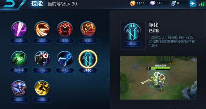 净化也是诸葛亮比较常见的召唤师技能,诸葛亮和貂蝉、露娜比较类似,都是以高机动性为主的法师英雄,但是区别于露娜和貂蝉的持续战斗能力和站撸能力,诸葛亮讲究的是爆发能力和收割能力,虽然诸葛亮有时需要利用二技能突脸刷被动,但是诸葛亮往往都是后手进团,并不需要像露娜、貂蝉那样出现在团战最中心。