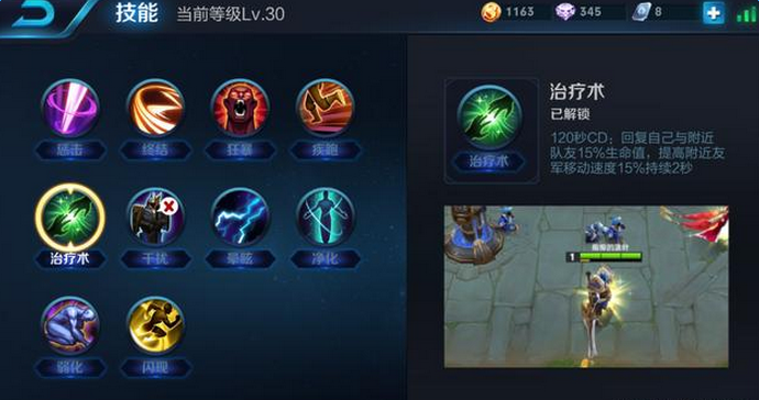 治疗这个技能虽然很少有诸葛连携带,但是确实也有部分玩家喜欢,治疗在势均力敌的形势下,往往可以决定一次单挑或者团战的胜负,尤其是团战双方血量都比较残的时候,一个回血一个加速往往可以收割对手。