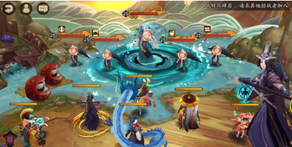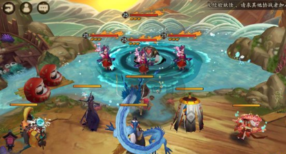1鲤鱼精+3河童,都是25级,鲤鱼精会给河童加盾,不过血量不是特别高。