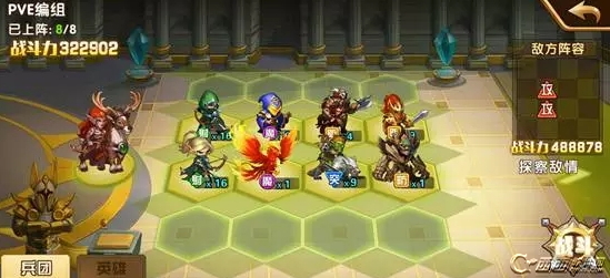 推荐理由:这已经是小精灵我手头上最强大的兵团组合了,然而最后也只是勉强过关。本关卡上一定要注意英雄技能的合理释放,只有英雄和兵团互相配合才能取胜。