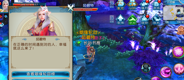 当玩家有意向寻找异性时,可以前往小池镇的【满月古井】,点击【满月古井】附近的NPC-邱碧特,可以打开【姻缘轮回】界面。