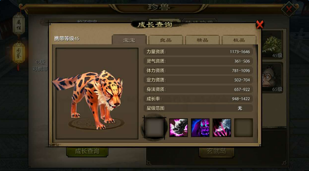珍兽系统在天龙八部端游中占有举足轻重的地位,当然在《天龙八部手游》手游中也是进行了保留,游戏中玩家可以直接去珍兽岛上去捕捉自己想要的珍兽,珍兽携带需要根据自身等级来解锁。在《天龙八部手游》手游中珍兽会根据宝宝、良品、精品、极品来进行定位,不同品级的珍兽外型颜色可是不一样的哦!总的来说珍兽系统和端游中的二代繁殖的区别比较大。不过在成长率、属性资质、技能上差异比较小,也是进行了一些简化的设计。
