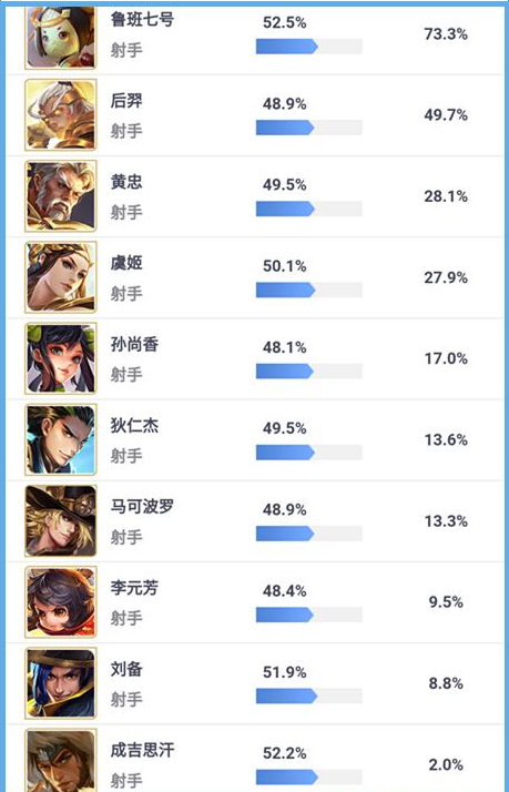 最近王者荣耀中的小学生成功把后羿打下神坛,另一射手大热 排行榜榜第一,今天西西小编给大家来聊一聊最近一周的射手英雄出场、胜率排行情况
