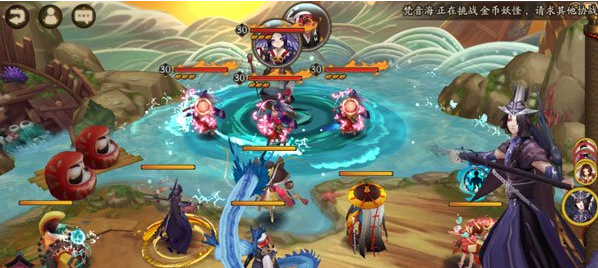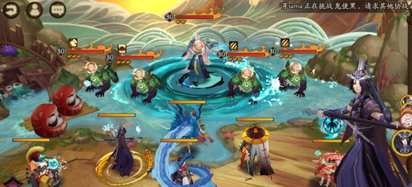 1鲤鱼精+3河童,都是30级,鲤鱼精会给河童加盾,不过血量不是特别高。