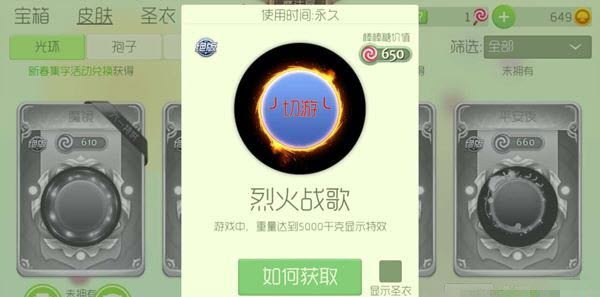 目前宝箱中是开不出烈火战歌的,想要的话,只能等超大宝箱里面的奖励皮肤更新了哦。后续有宝箱的奖励更新消息,小编会在第一时间通知大家的。