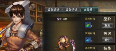 宠物重生分为品阶、等级、技能、天赋四种类型,不同类型的重生消耗不同类型的重生石