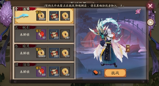 这一层总体来说的难点主要在第三关,对于玩家式神阵容的总体练度要求比较高,3个AOE+荒川的单体,对式神肉度有很大的考验。如果式神练度不够的话,可以试试带2个治疗,虽然打得慢点,但是会相对比较稳。