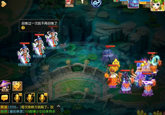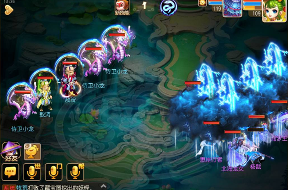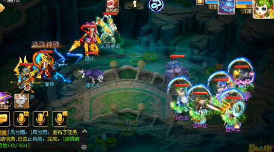 注:小怪随心情水清,带杨戬是因为,敖波、敖涛一个抗法一个抗攻,大神也可以直接龙阵开,带物法双输出