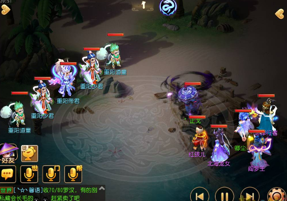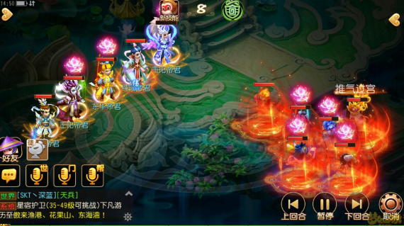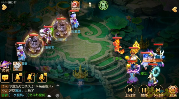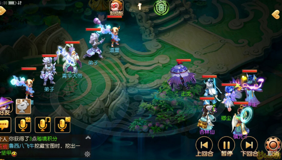 注:我带的白龙开了两个秘境技能——浪涌和闭月羞花,还是因为鄙人没罗汉,所以点杀方面我选择优先杀龙宫,千里神行buff让镇元子比对面快赌脸,主怪是超级定身符,我打的时候,他没失手过……