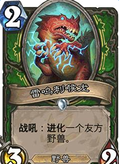 雷鸣刺喉龙:虽说是一张白卡,不过对于猎人来说完全可以当一张稀有卡来用,2费3/2的身材哪怕空下也是可以的,配合手牌中的大量低费随从,1费直接丢一个野兽,二费直接进化岂不是美滋滋~