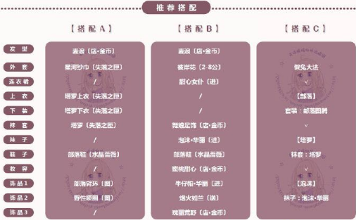 搭配B:麦浪、彼岸花、甜心女仆、舞娘足饰、泡沫华丽、部落鞋、蜜桃甜心、牛仔帽华丽、炮火如兰、瑰丽荒野