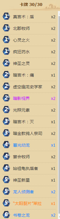 卡组的神圣新星可以替换龙息,不过我是为了配合北郡或者莱拉刷牌,脸好的同学可以把一个书卷龙换一个灭。这卡组造价非常低,强度简直爆炸,有兴趣的朋友可以去组个试试,只要你不乱交法术,吊打目前大部分卡组是没问题的,最后祝大家早点上传说 (*^__^*)