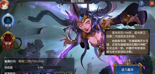 黯月神殿是迷雾世界重要的副本任务之一,13级解锁,每周二、四、六刷新。需要3人组队完成。通关副本可获得金币、经验、装备和遗物,并且有概率获得阿卡、艾尔隆、霍克、朵丽丝、米迪亚、尤利西斯、罗琳、沙恩、格瑞姆的专属装备。
