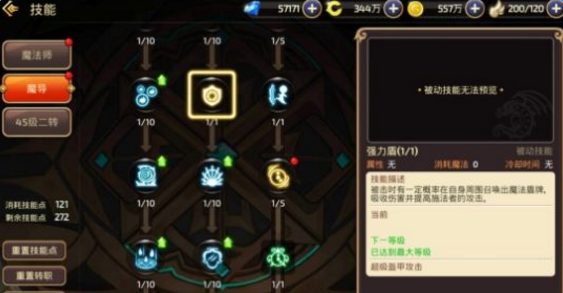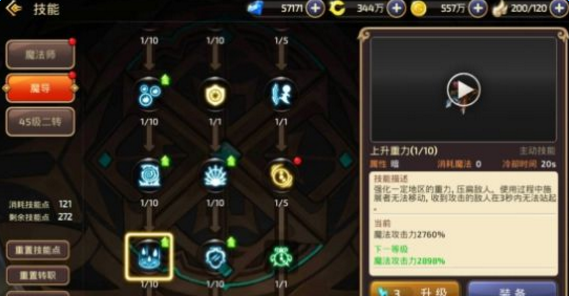 由于每个职业只能选择佩戴5个主动技能,因此我们在主动技能的加点上,除了选择高输出技能外还要考虑技能搭配。其中召唤黑洞,九尾激光,上升重力及光雨是魔导输出最高的四个技能,我们可以考虑优先升级,之后主动技能只能再选择佩戴一个,此时推荐大家选择升级传送,能量反射或者时空枷锁。