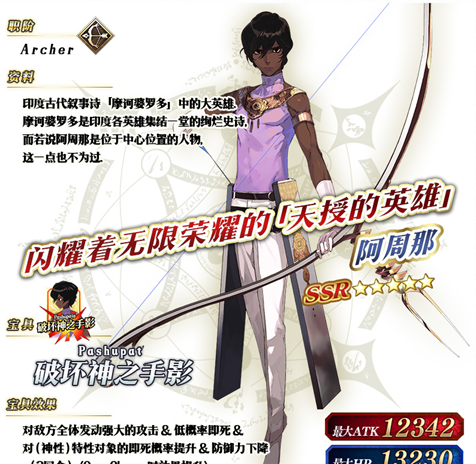 阿周那是个很尴尬的英灵,三张蓝卡,却是红色魔放,又出星又抢星,出星技能的CD还长。
