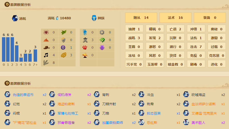 卡组谁都能组来,讲的也不是卡组,给大家讲一下对各职业的心得和优劣我觉得比直接发卡组强的多,也看过别人发奇迹贼,但是讲心得的没怎么注意到。