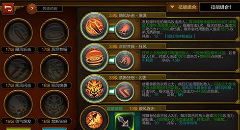 灰烬战士一共拥有飓风斩击、灰烬共振、疾风闪击、狂风突袭、剑气爆发、禁断狂怒六个技能核,可以随意两两搭配组合出三个技能在战斗时使用。每一个技能核作为主技能和副技能使用时会有不同的效果。