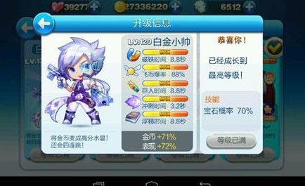 因为白金小帅可以稳定地将超级奖励中的一大半金币都变为高分水晶,如果此时再配上糖白虎的4倍奖励关卡得分技能岂不乐哉?