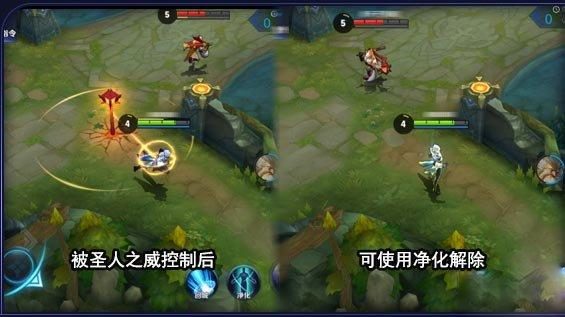 老夫子使用大招困住敌人,被困住的敌人无法使用闪现、位移技能脱离明灯,但净化可以解除圣人之威的控制效果。