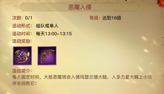 光明大陆恶魔入侵怎么进不去,光明大陆恶魔入侵进不去怎么回事。光明大陆手游中玩家达到16级就能但也恶魔入侵的玩法了,不过很多玩家反映恶魔入侵进不去,光明大陆恶魔入侵怎么进不去,光明大陆恶魔入侵进不去怎么回事,西西小编来为大家介绍。