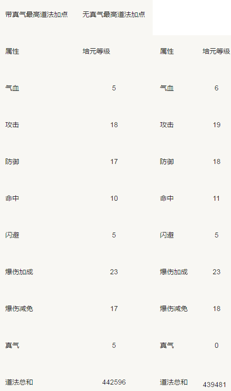 极为简单的道法提升环节,基本加点方式总结为两种:第一种为带真气最高道法加点,另一种为不带真气最高道法加点,鬼王可选择第一种,其余职业推荐第二种。